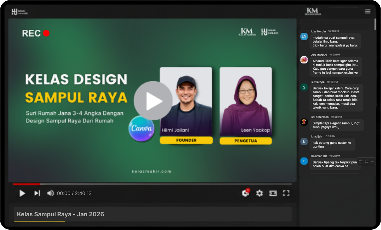 Akses lifetime. Belajar teknik sampul raya bila-bila masa.